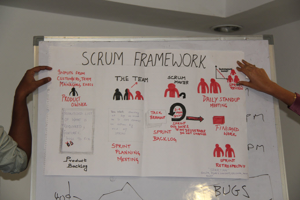 The post-sprint Review meetings were fun with the teams presenting some different results in their work. The Product Owner was hard to please, but we think under that tough skin, he was generally pleased with the work. The same can’t be said about the process. In the end, he chose his favourite diagram to hang on his boardroom wall.