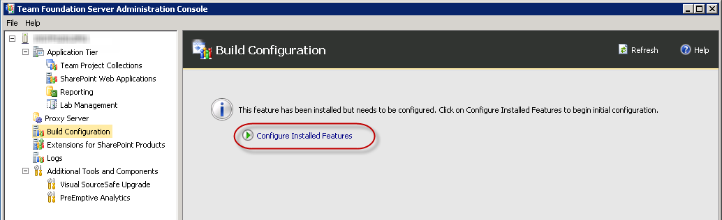 - On the Build Configuration tab, click Configure Installed Features to start the wizard.
