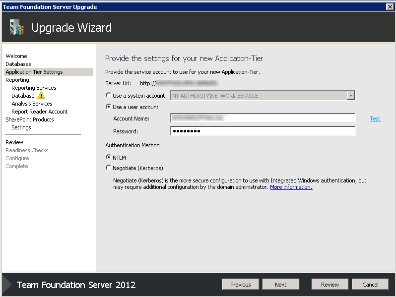 - Take the TFS 2012 server offline. This is important because we don't want any checkins or work item changes to come through while we're halfway through the process. They may miss the upgrade!