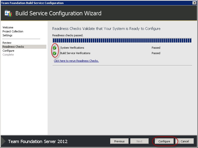 Note: Again, you might need to reboot your machine before being able to get past the Verify screen. If this doesn't work, refer to Steve Wiseman's post again. - Once you get all green ticks, click Configure.