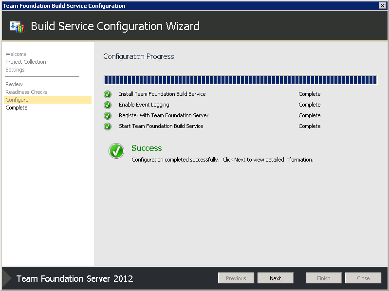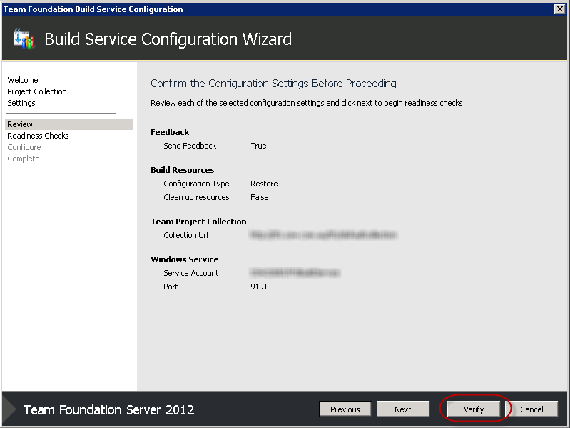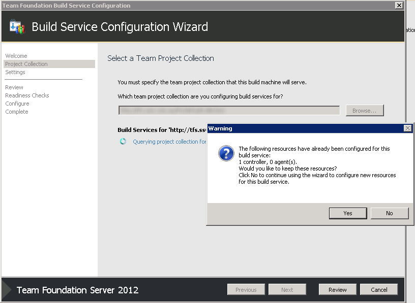 There are some additional steps you may need to take to get everything back up and running.- I used the Build Service Configuration Wizard to re-setup our Build servers. If you're using a separate Build Server from your TFS Server, you'll need to go through the steps to uninstall and reinstall TFS 2012 RTM on the Build Server before completing the below steps on the Build Server.