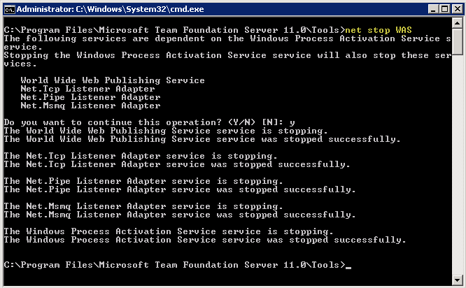 - Stop the TFS services