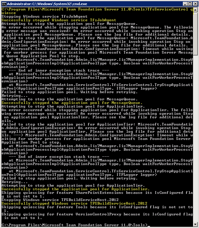 - Use TFSServiceControl quiesce to stop all the agents.