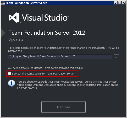- Install TFS 2012 Update 2