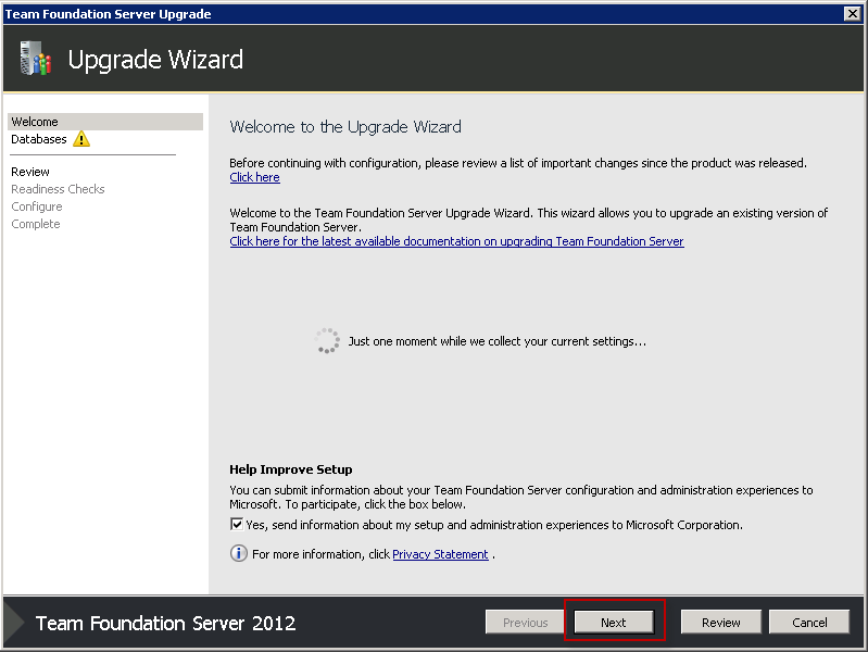- I also upgraded Team Foundation Server on our Build Servers by installing the upgrade and checking the settings were the same.