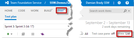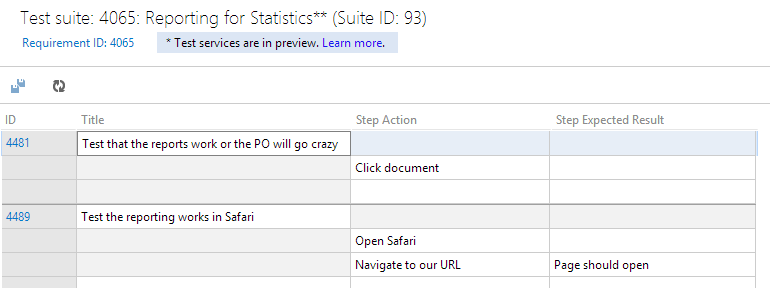 Team Foundation Service - Test Case Grid View