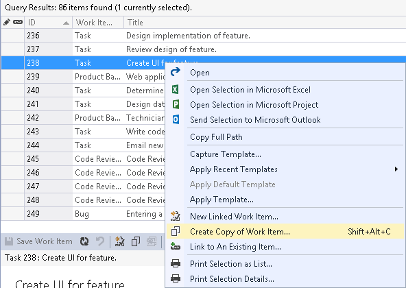 Visual Studio - Copy Work Item