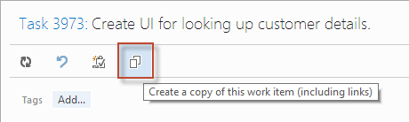 The Copy Work Item button in Team Web Access